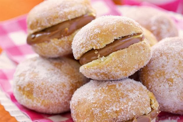 - Retiralas con espumadera, pasalas por papel absorbente y luego por abundante azúcar. Haceles un tajito y rellenalas con dulce de leche.